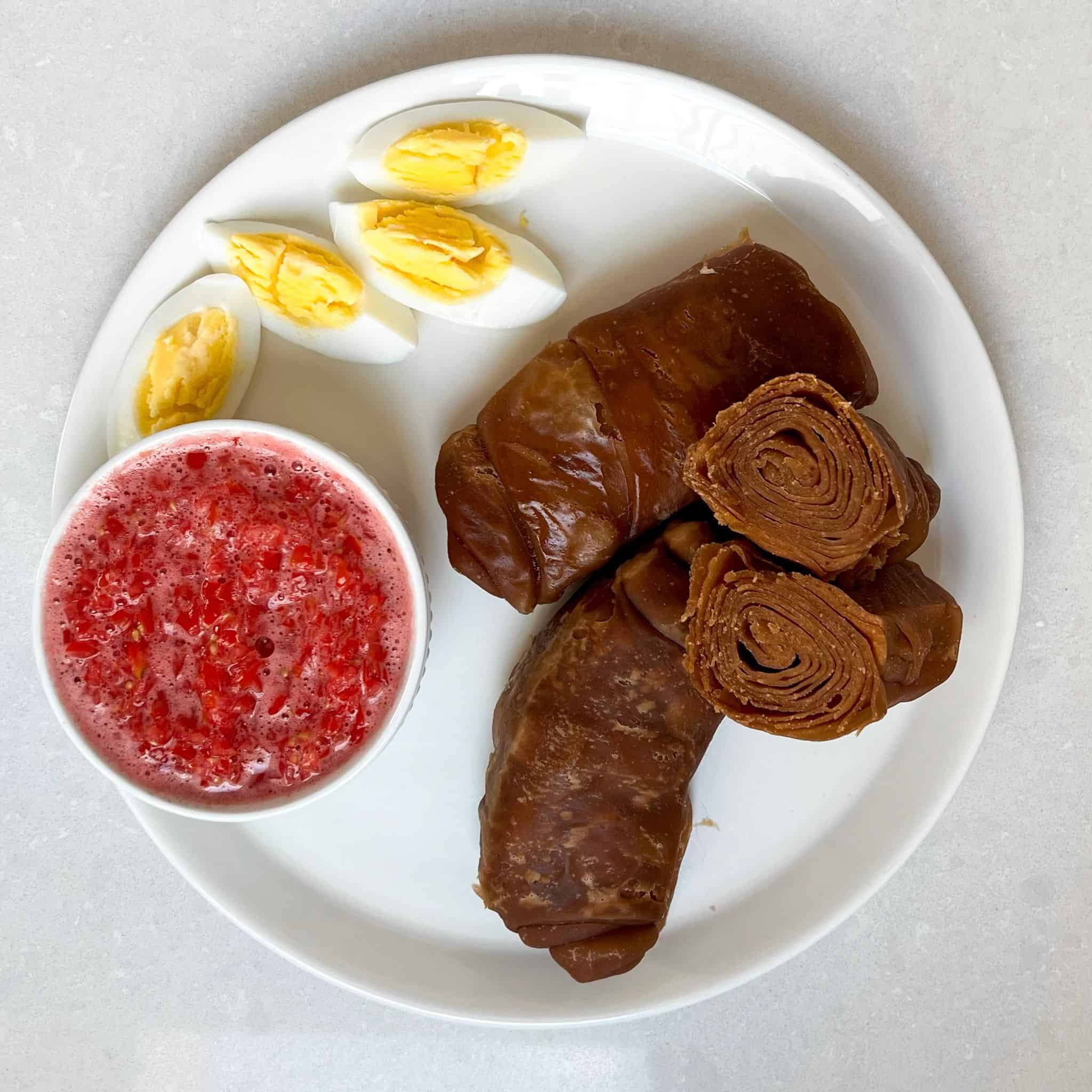 מוכן! מגישים לצד רסק, ביצים וסחוג ירוק.