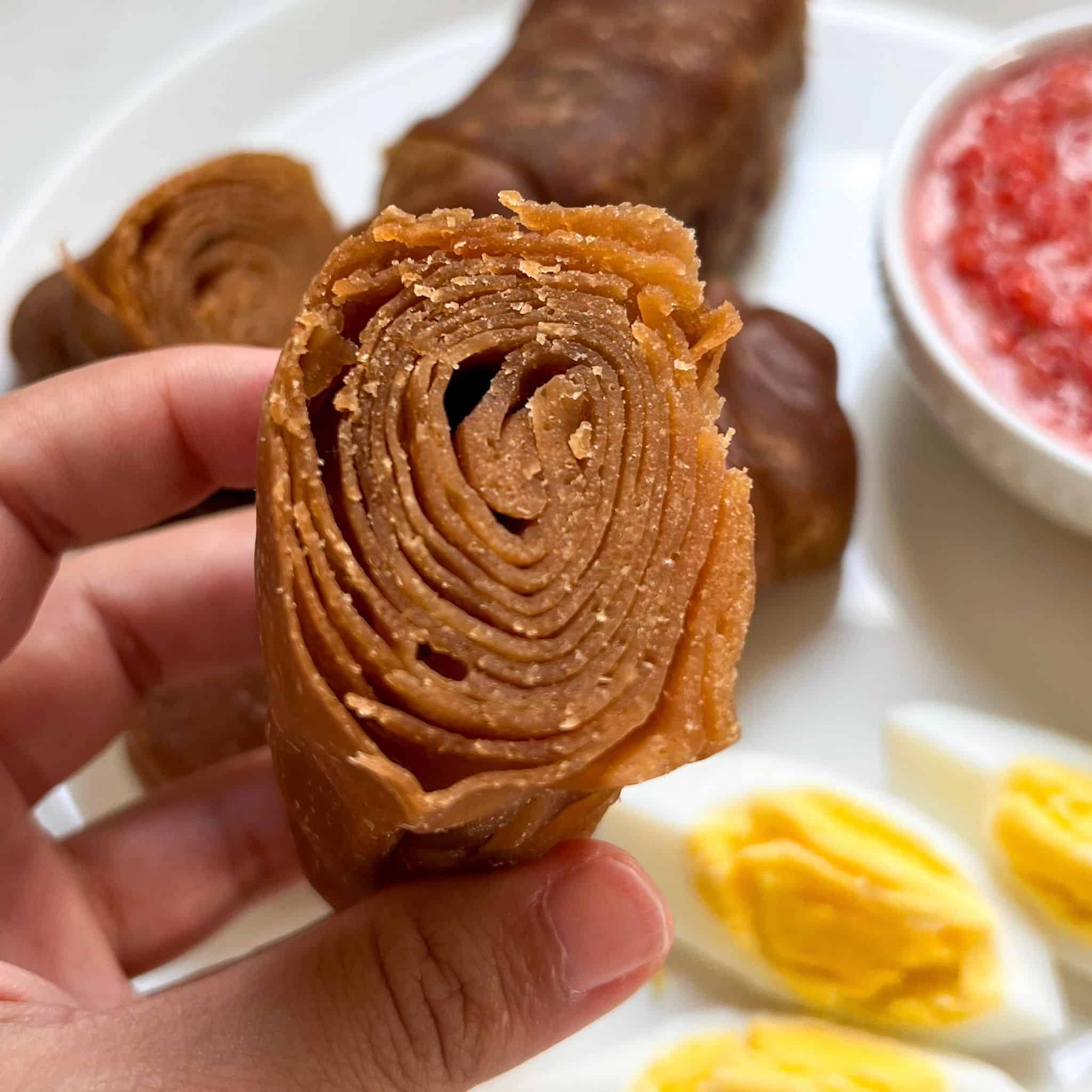 פותחים את הבצק לפי הדוגמא בסרטון ומותחים היטב עד לקבל דף גדול ושקוף.