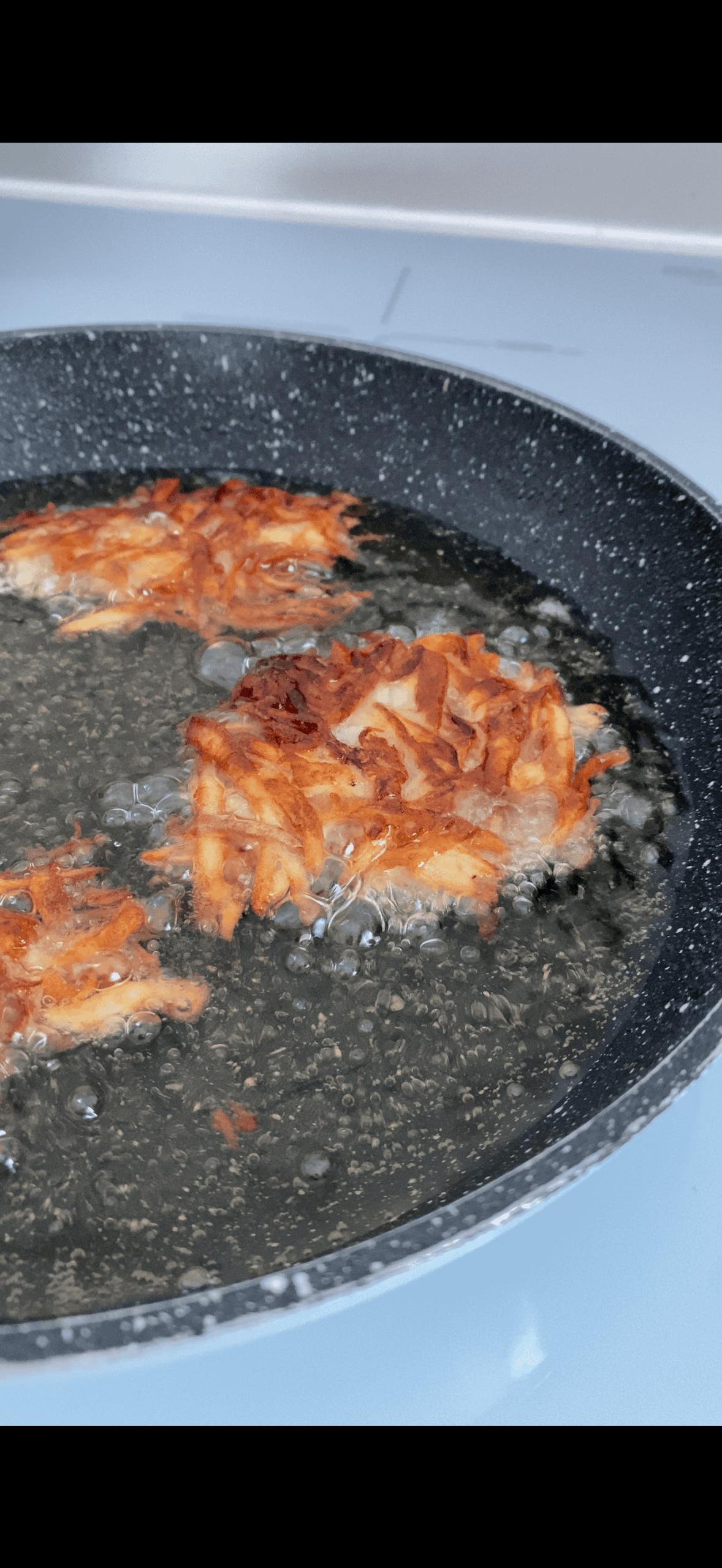 מוסיפים מלח ופלפל, מערבבים ומטגנים מיד בשמן חם במחבת או סיר סוטאז עד שזהוב על גבול השחום.