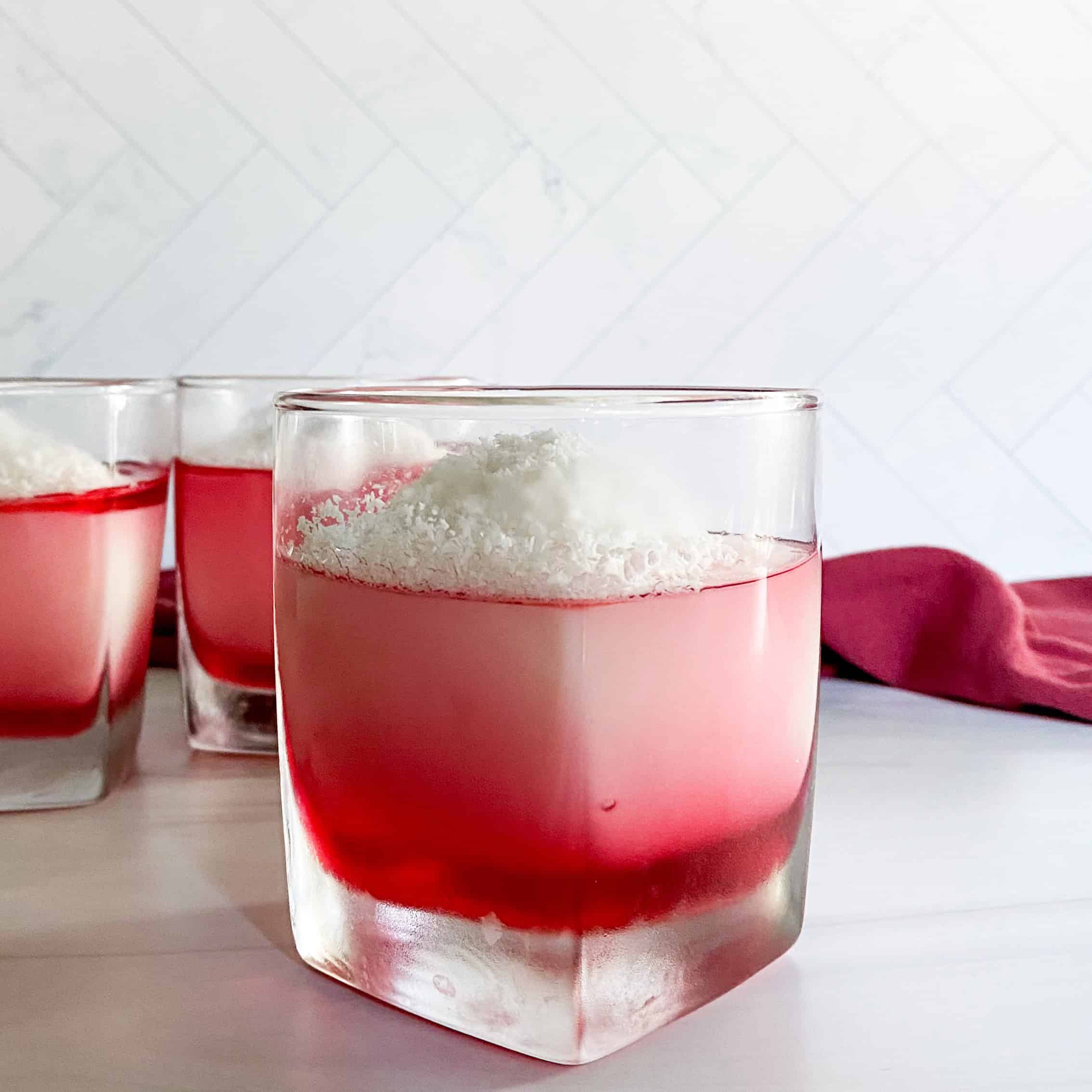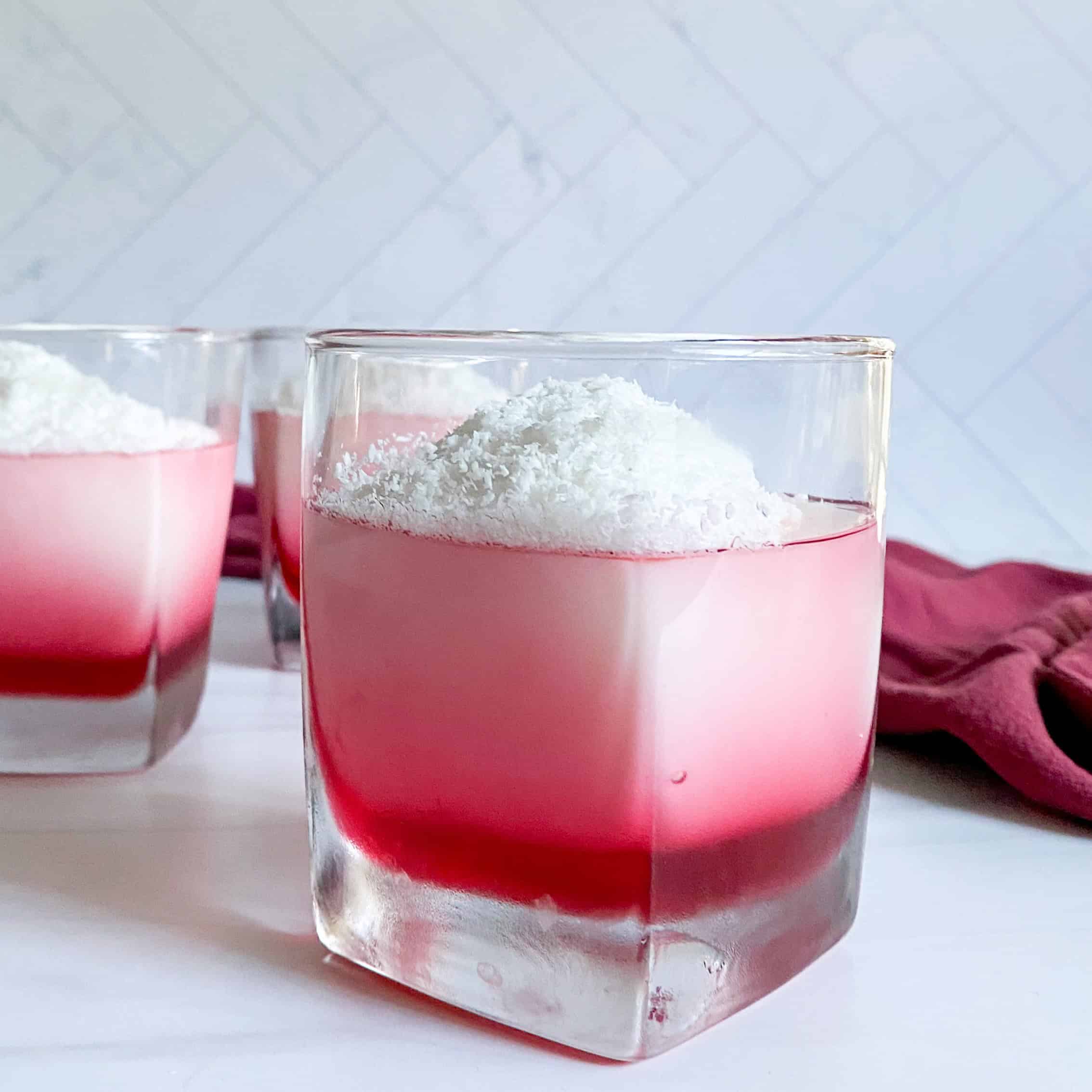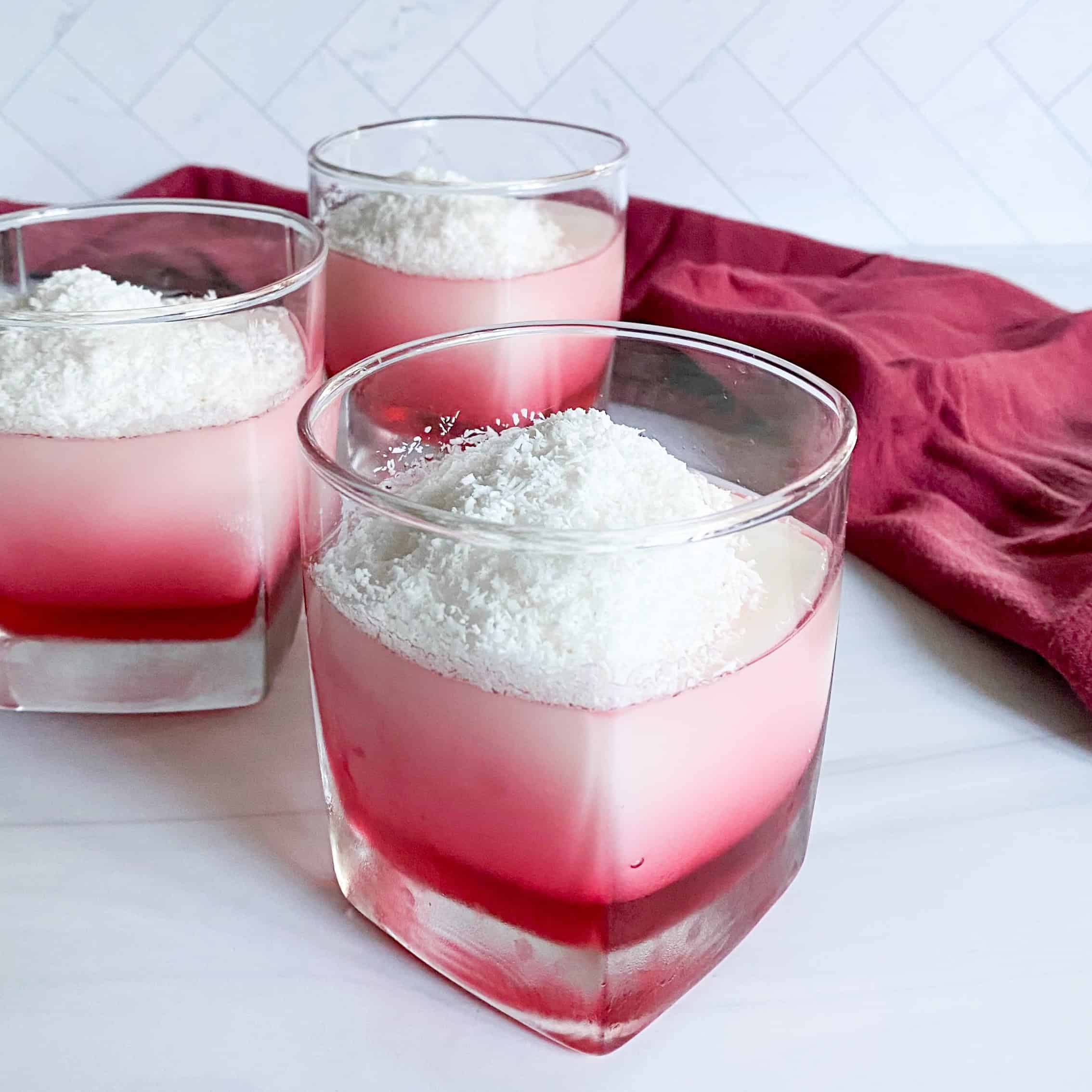 רגע לפני ההגשה ממלאים את הכוס מלבי בסירופ שהכנו וקוקוס טחון.