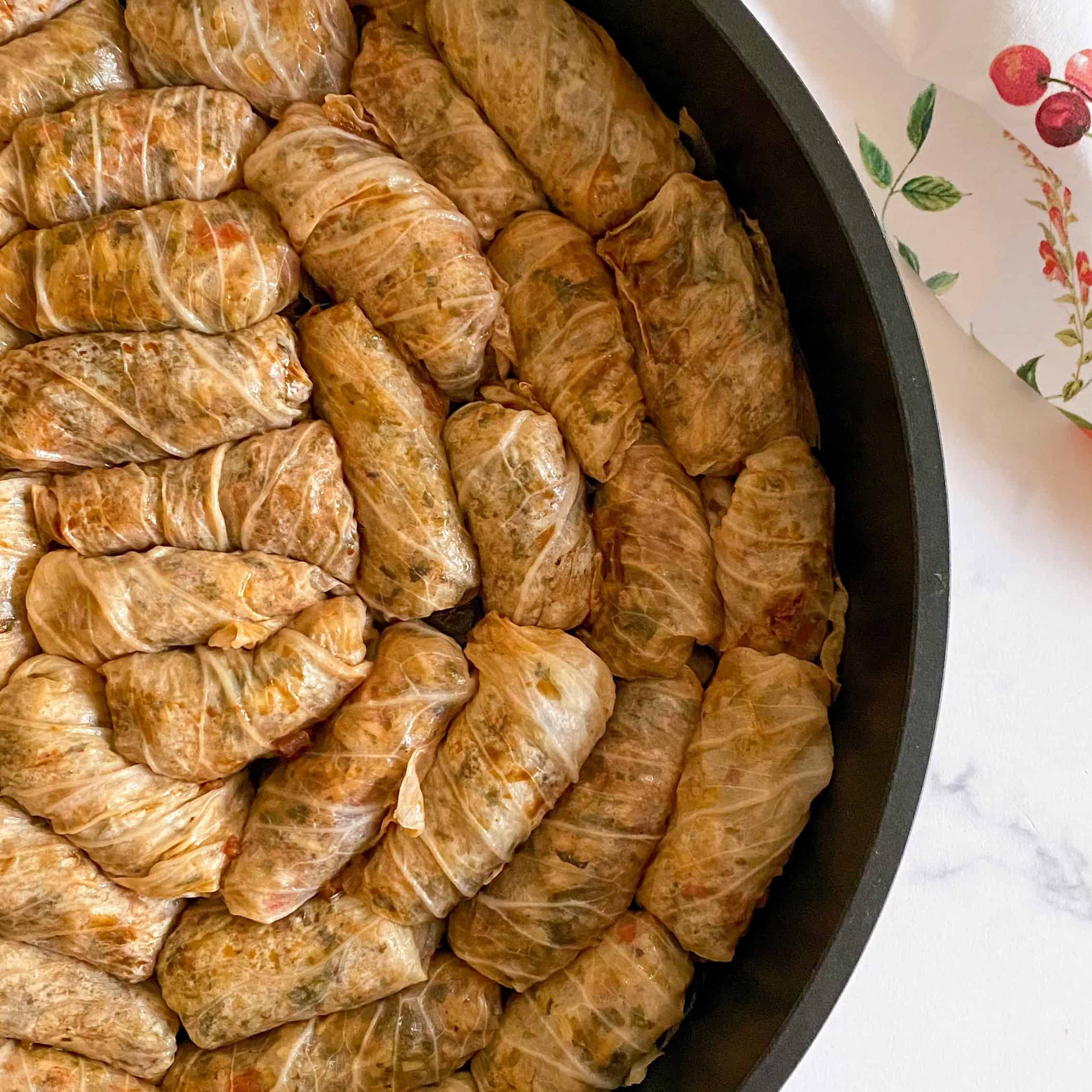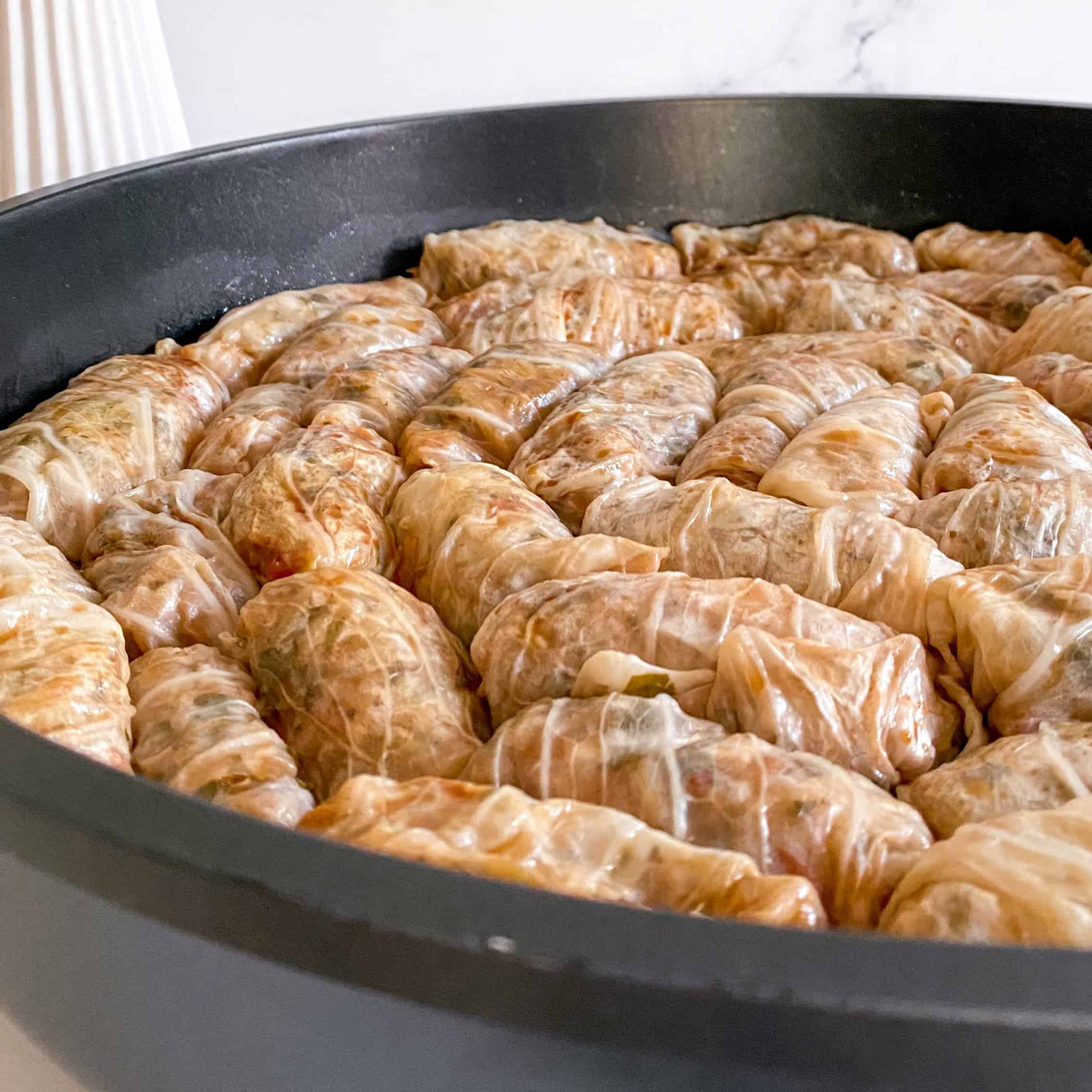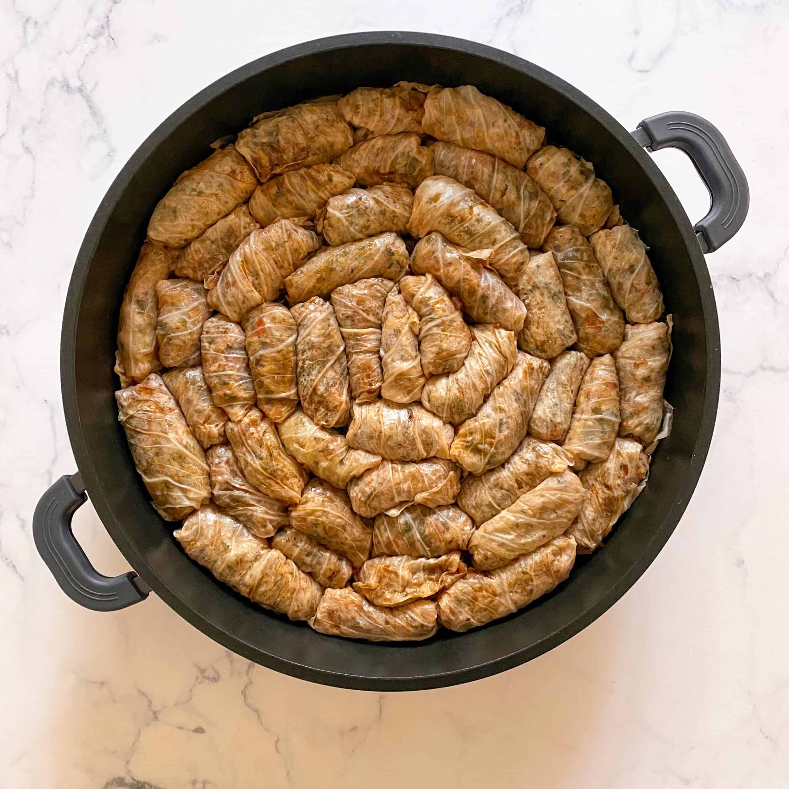 את עלי הכרוב חותכים ל-3 או 2 תלוי בגודל העלה, ממלאים בכף מהמילוי, מגלגלים (דוגמא בסרטון) ומניחים בסיר רחב ונמוך המרופד בעלי הכרוב הבוגרים (העלים החיצוניים ואלו שנקרעו בתהליך)