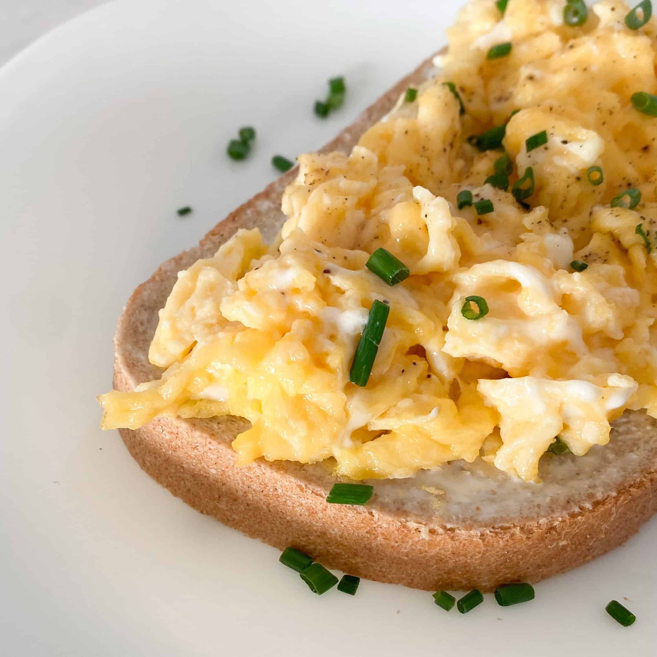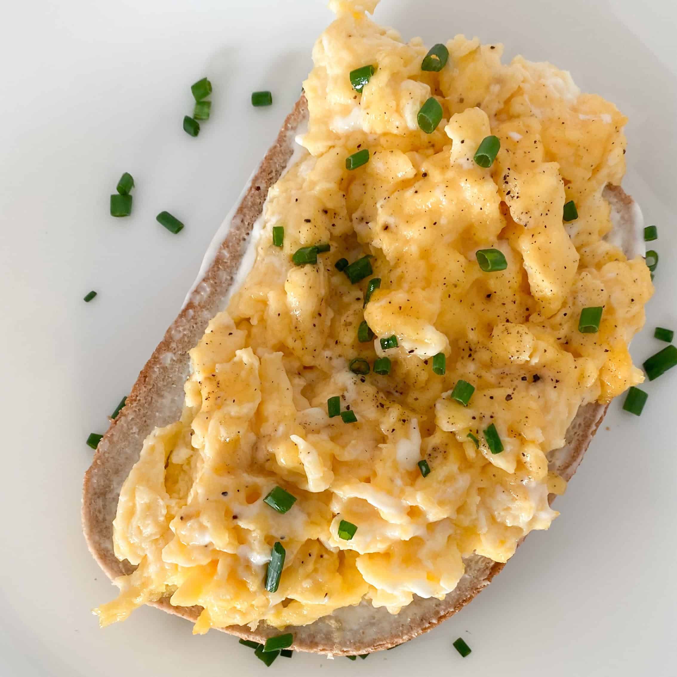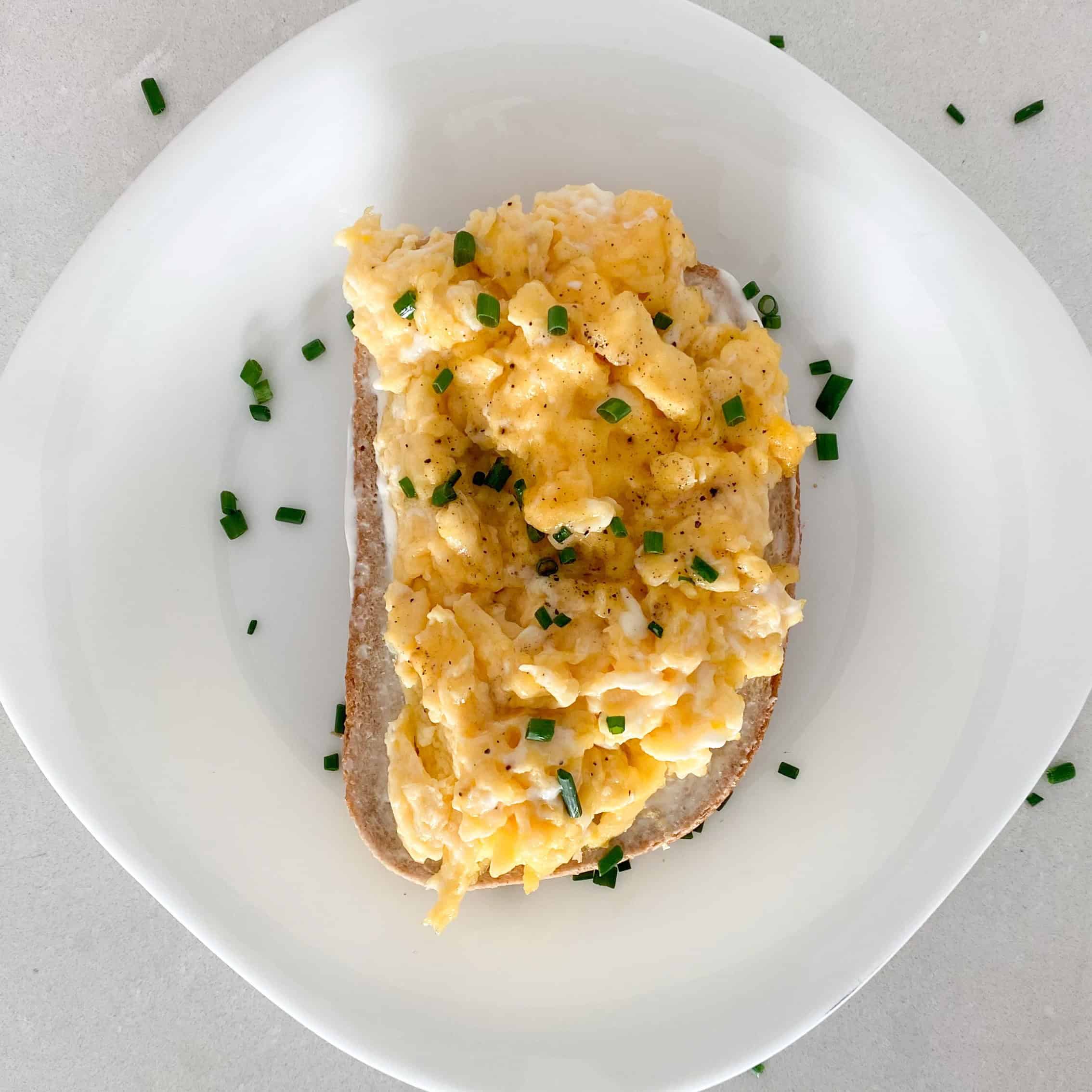 מיד מורחים את הלחם בשמנת ומניחים בזהירות את המקושקשות מעל.