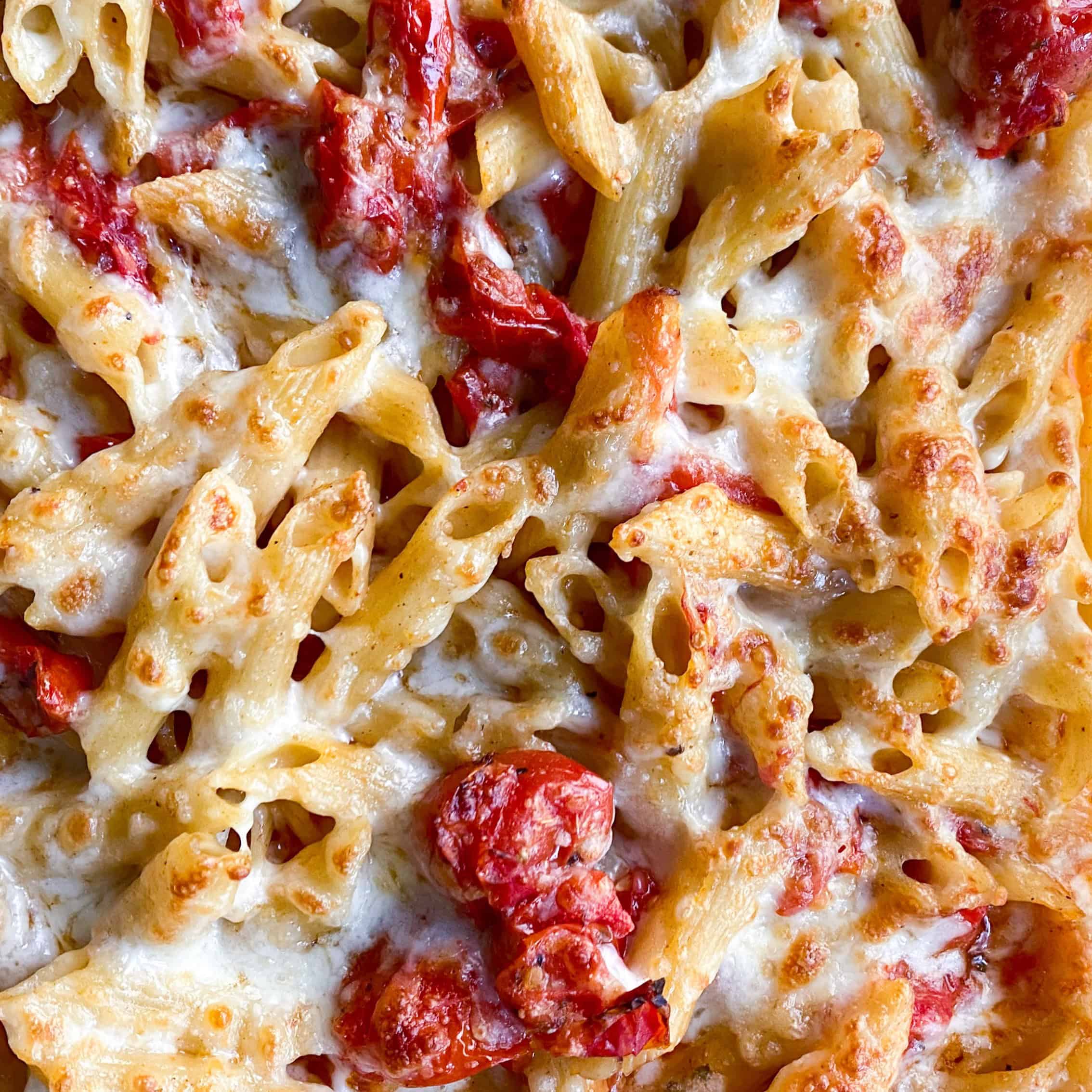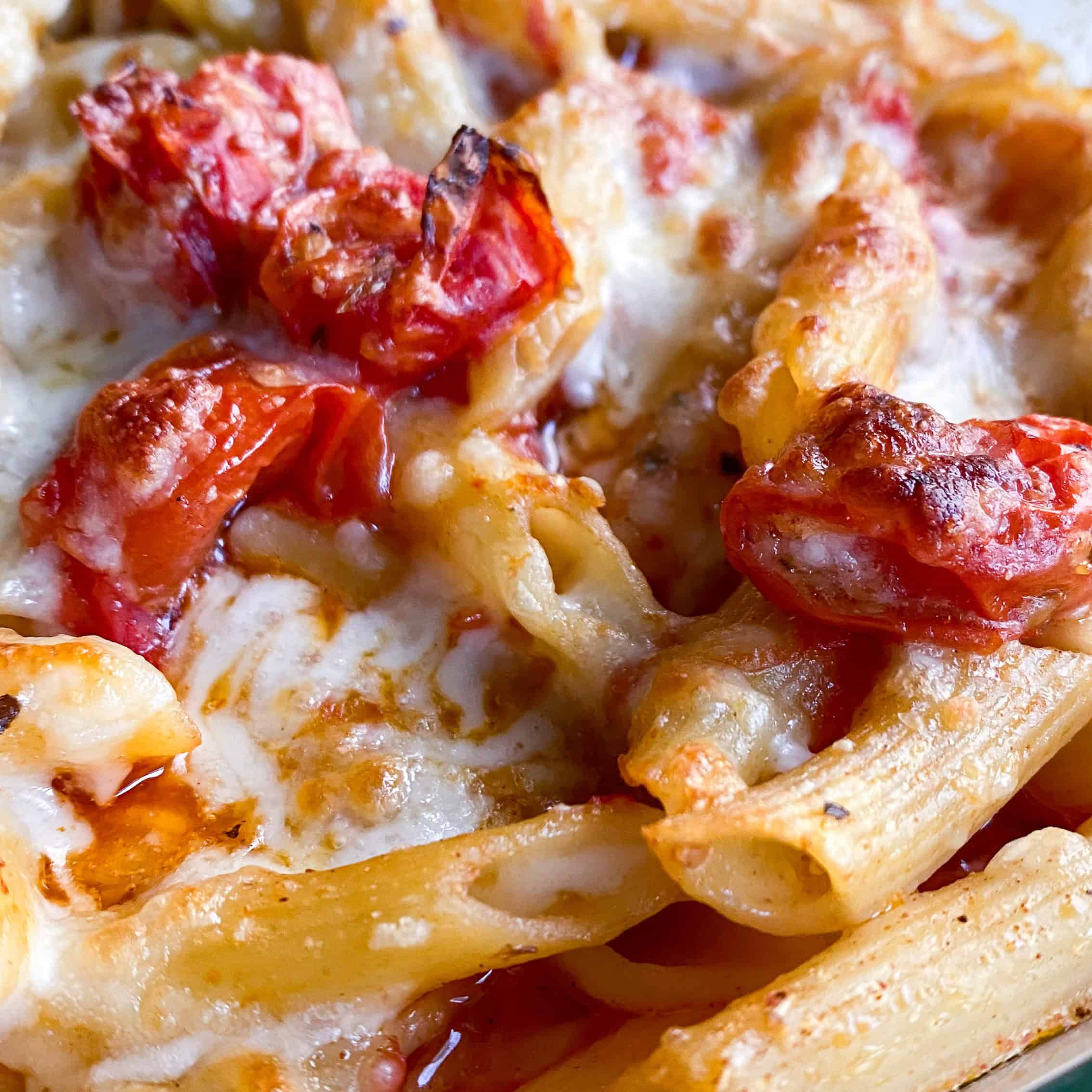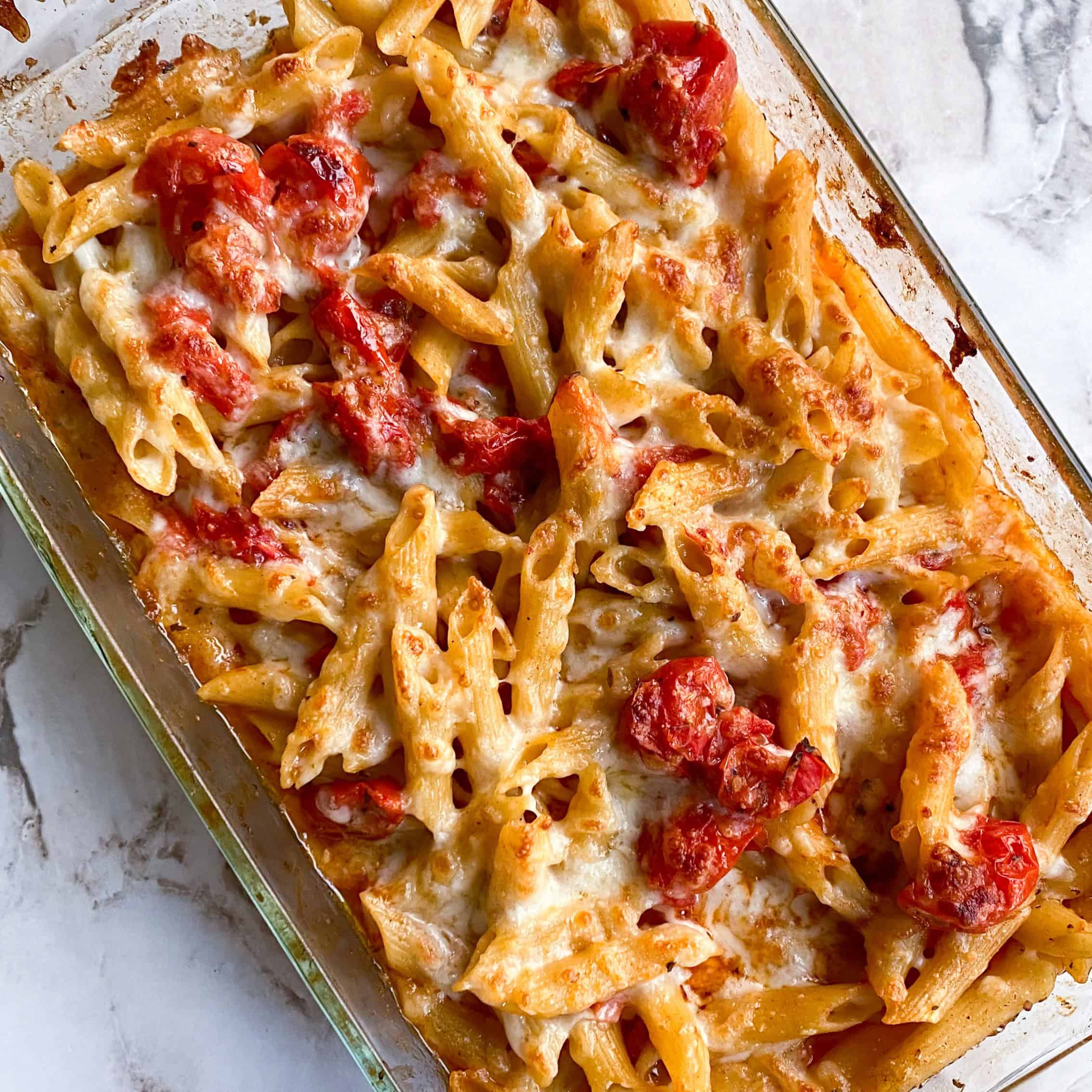 פסטה עגבניות בתבנית אחת. ארוחת פסטה הכי קלה, מהירה וטעימה שתכינו. 5 דקות עבודה ולתנור!