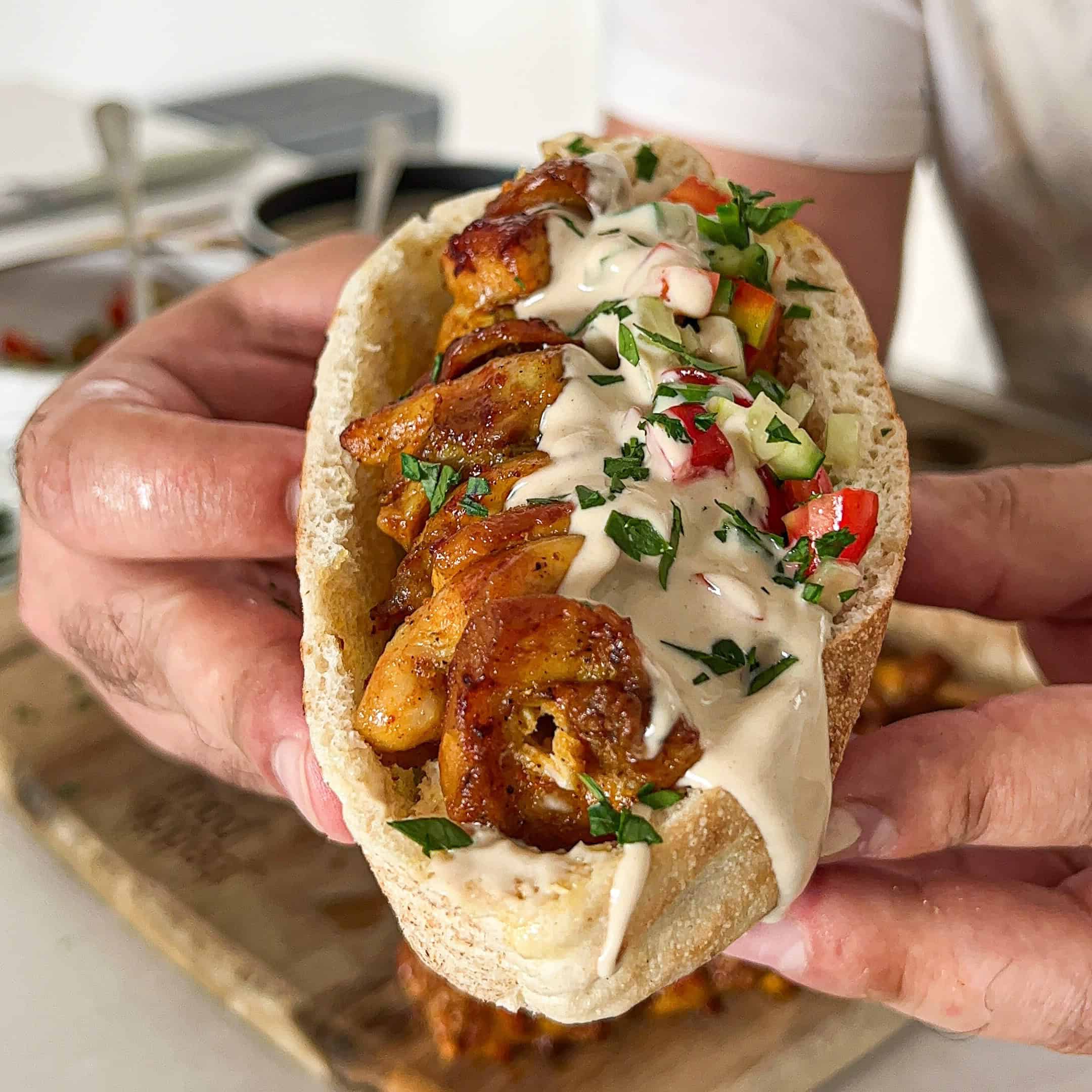 מוכן! מגישים את השווארמה פרגית בפיתה יחד עם תוספות שאוהבים!